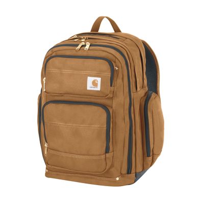 Meet the king of all work bags - the Carhartt Legacy Deluxe Work Pack. This bag does it all, no questions asked. Built of heavy-duty 1200D Poly with Rain Defender durable water repellent and Duravax abrasion-resistant base, there is seriously a spot for everything you need to carry. The dedicated padded computer section stores up to a 17 inch laptop plus there are two additional large compartments perfect for files, equipment or a change of clothes. Protect your safety glasses in the tricot lined zippered pocket at the top. Front panel boasts 2 zippered pockets for organizing your smaller items. Zippered utility pockets on either side of the pack are ideal for a pair of work gloves or water bottle. Hauling this bag around is no sweat off your back with contour fit shoulder straps and padded air mesh back panel.