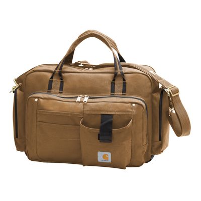 For the guy that's constantly on the move from job site to office and back again - get the bag that works for you, the Carhartt Legacy Brief. Constructed of heavy-duty 1200D Poly with Rain Defender durable water repellent and Duravax abrasion-resistant base this bag is tough enough for the work site but professional enough for meetings with the client. Padded laptop compartment with additional storage space for files, notebooks or even a couple of tools. The brief also boasts a front zippered organization panel and 2 additional exterior pockets. Carry your brief by the sturdy haul handles or with the removable, adjustable shoulder strap with pad.