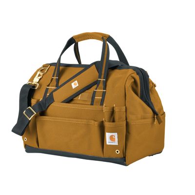 Get the job done right the first time with the Carhartt Legacy Tool Bag. Perfect for the DIY-er and those who show up to the job site every day. Constructed of heavy-duty 1200D Poly with Rain Defender durable water repellent, this rugged bag can handle even the toughest jobs. It also features a Duravax abrasion-resistant base or custom molded load-bearing base, both of which provide extra protection from hazardous job site conditions as well as scrapes and punctures from tools. Note the triple needle stitch provides reinforcement where it counts. The internal metal frame offers structure to the bag so you can get in and get out without it collapsing in on itself. Tools stay organized and easy to find with a variety of different sized pockets and loops.