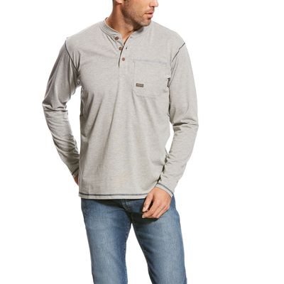 - 3-button henley with reinforced chest pocket